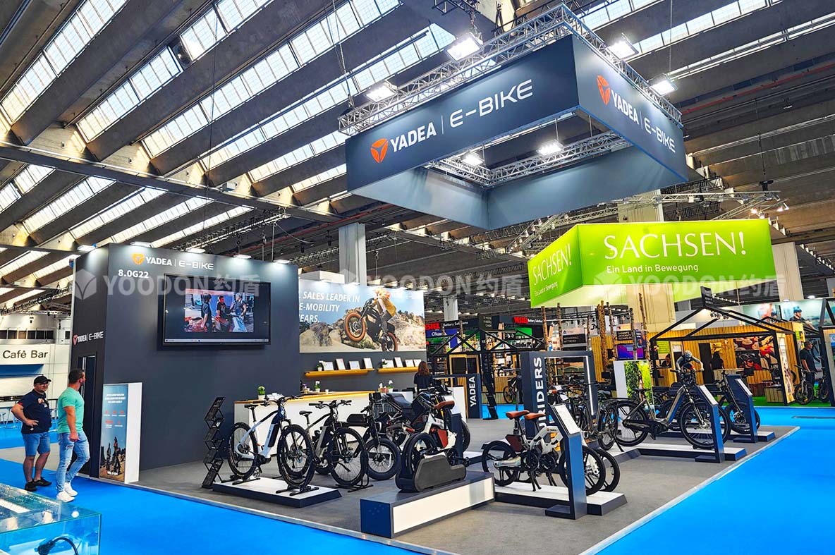 2023歐洲自行車展覽會(EUROBIKE)于2023年6月21日至6月25日在德國法蘭克福會展中心舉辦,促進了自行車運動在全球的發(fā)展。約盾展覽德國展臺搭建方案根據(jù)客戶需求,以生活時尚簡約設(shè)計方向,打造出雅迪國際范品牌形象!