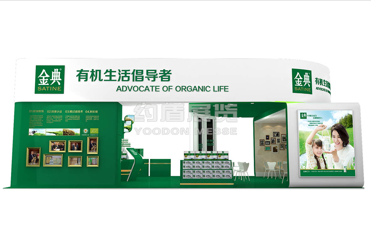 由于有機奶的生產認證嚴格、投入要求巨大,對于奶牛養殖環境、加工工藝都有著極為復雜的要求;長期以來,在我國一直沒有乳品企業生產有機奶。直到2007年,金典有機奶問世,填補了我國有機乳品市場的空白。在多年的研發中,金典認真分析了國際有機標準,并嚴格按照這個標準打造了一條完整的有機牛奶生產鏈。金典展覽設計制作有機生活倡導者的主題吸引廣大意向客戶前來咨詢。