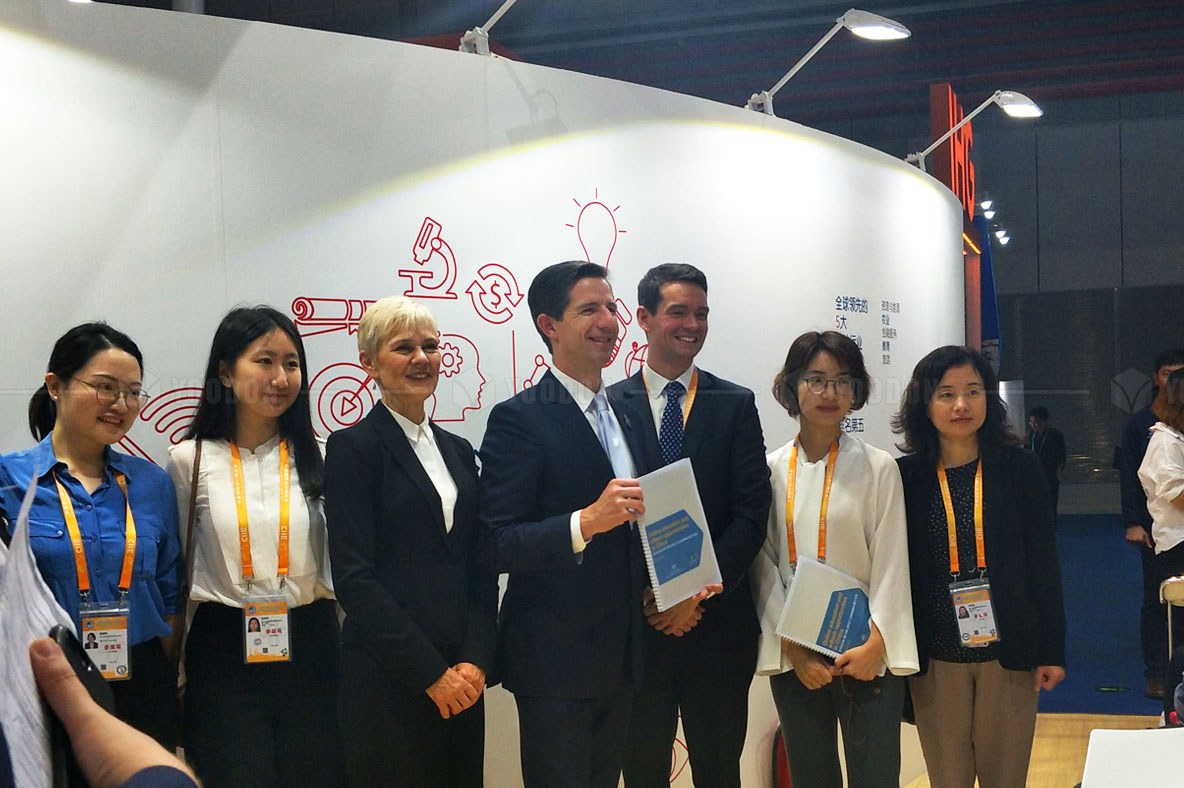 澳大利亞館-澳大利亞貿(mào)易、旅游和投資部部長西蒙伯明翰先生參觀了澳大利亞企業(yè)館并體驗(yàn)了精心設(shè)計(jì)和準(zhǔn)備的互動活動,給予我們高度贊揚(yáng)和認(rèn)可。