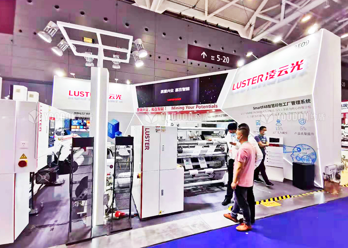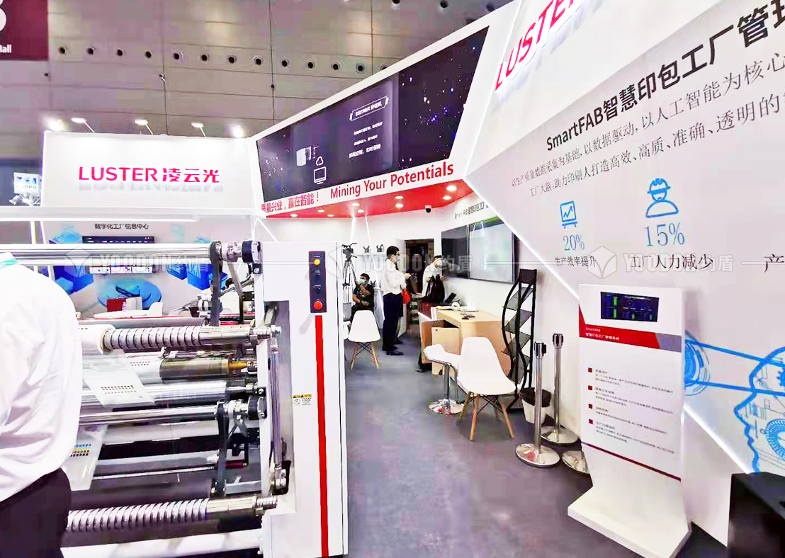 凌云光技術股份有限公司扎根于視覺圖像,光纖光學兩大光技術方向,是致力發展工業人工智能的現代高科技企業,也是與約盾合作過多次的老客戶。本次展臺的設計理念以產品展示為主,并將其設置在人流量大的入口。