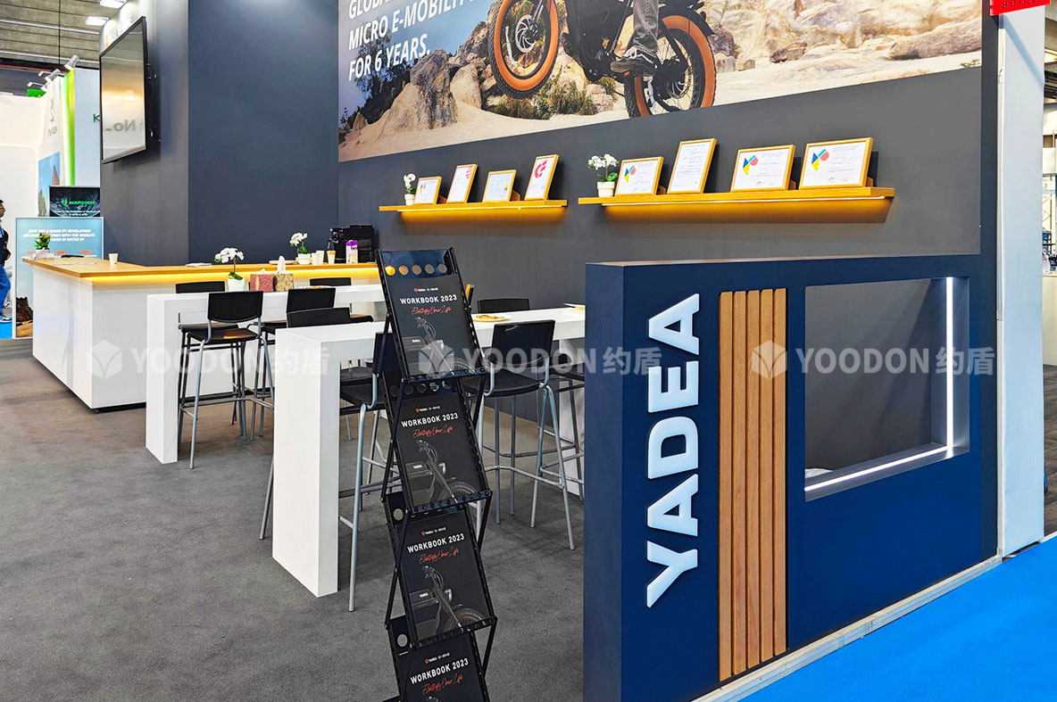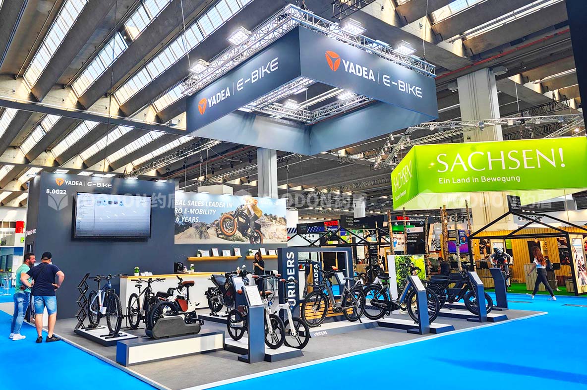 周一至周日 9:00-18:00 聯系客服2023歐洲自行車展覽會(EUROBIKE)于2023年6月21日至6月25日在德國法蘭克福會展中心舉辦,促進了自行車運動在全球的發展。約盾展覽在德國展會搭建過程中,根據客戶需求以生活時尚簡約設計方向,打造出雅迪國際范品牌形象!